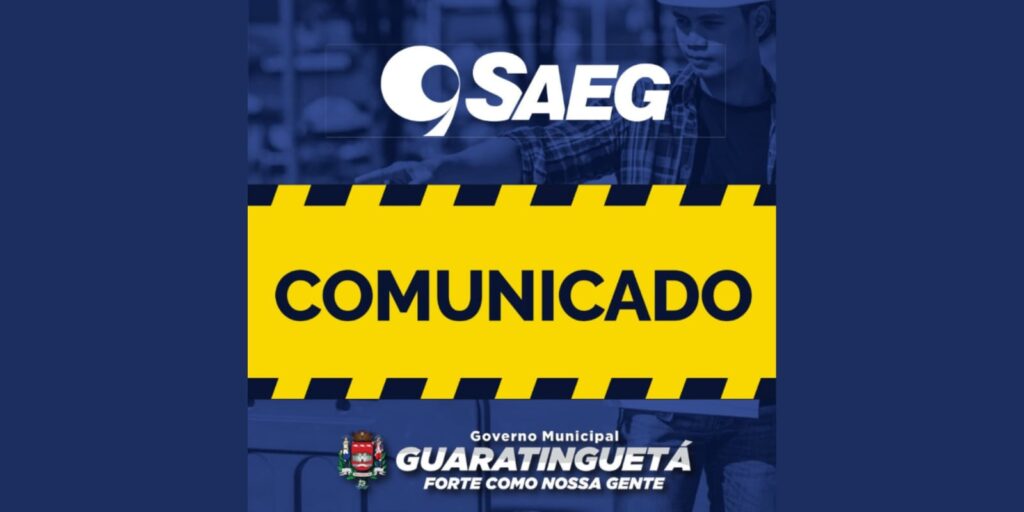 A SAEG (Companhia de Serviços de Água, Esgoto e Resíduos de Guaratinguetá) informa que na próxima terça-feira, 03