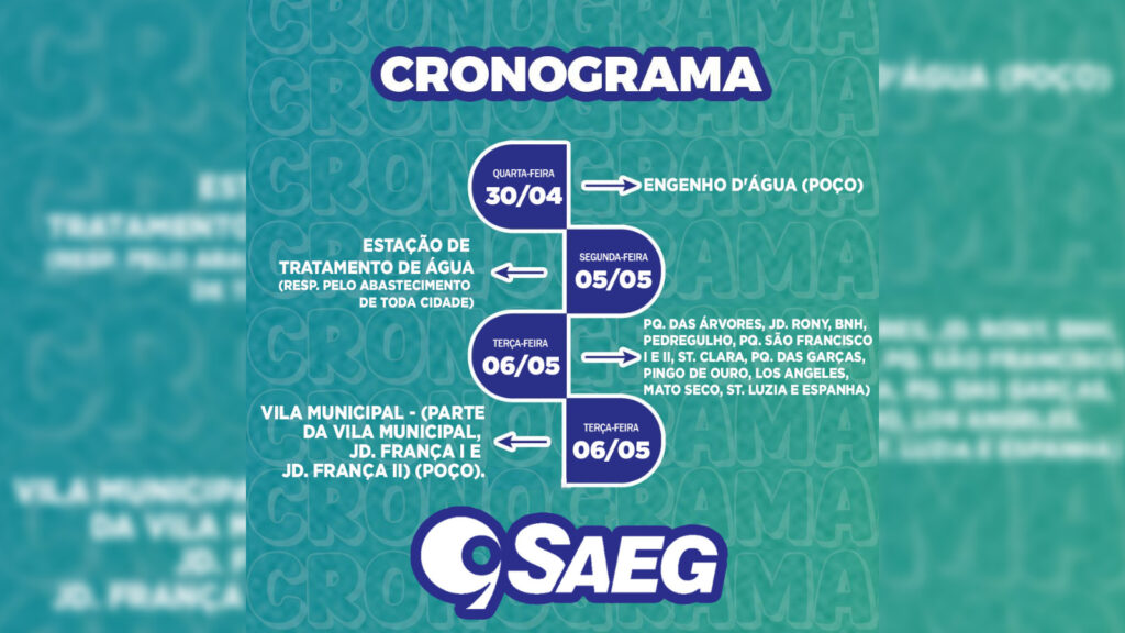 Para mais informações ou esclarecimento de dúvidas, entre em contato com a SAEG pelo telefone 156 ou baixe o aplicativo 156 SAEG.